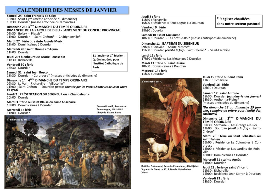 Vie du secteur Plus de masque, mais restons attentifs et confiants en Dieu, en gardant les gestes sanitaires. | Annonces dans le Bulletin Merci de Communiquer vos Annonces pour le mois à venir par courriel avant le 15 du mois en cours | Feuille paroissiale Toutes les infos des célébrations et de la vie du secteur.